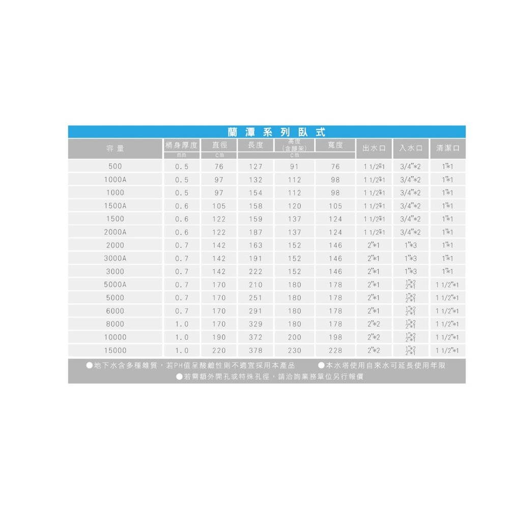 另外水塔部分需先場勘、吊車及安裝費皆另計