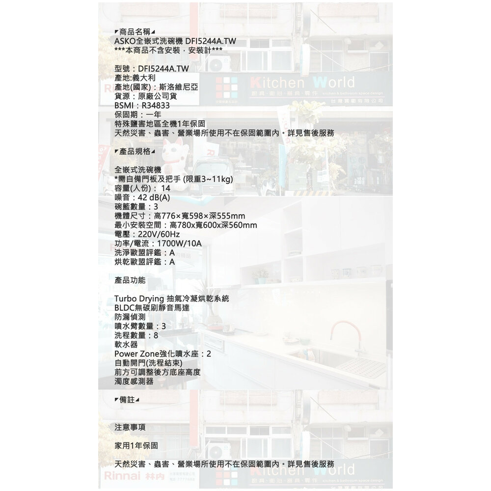 ASKO 賽寧家電  DFI5244A.TW  唯一可以調整高度 全嵌入式 洗碗機 220V 【KW廚房世界】 封面照片