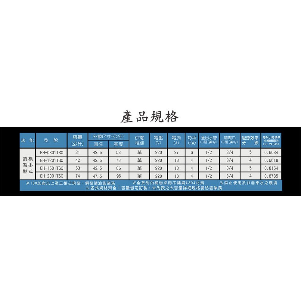 HMK鴻茂 EH-2001TSQ 74L 橫掛式調溫線控型 電熱水器