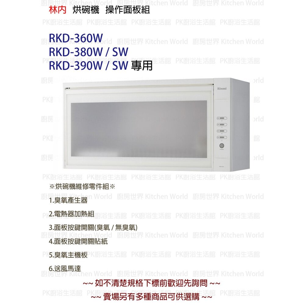 烘碗機維修零件 - 按鍵開關面板 RKD - 380 / 390S (W)專用