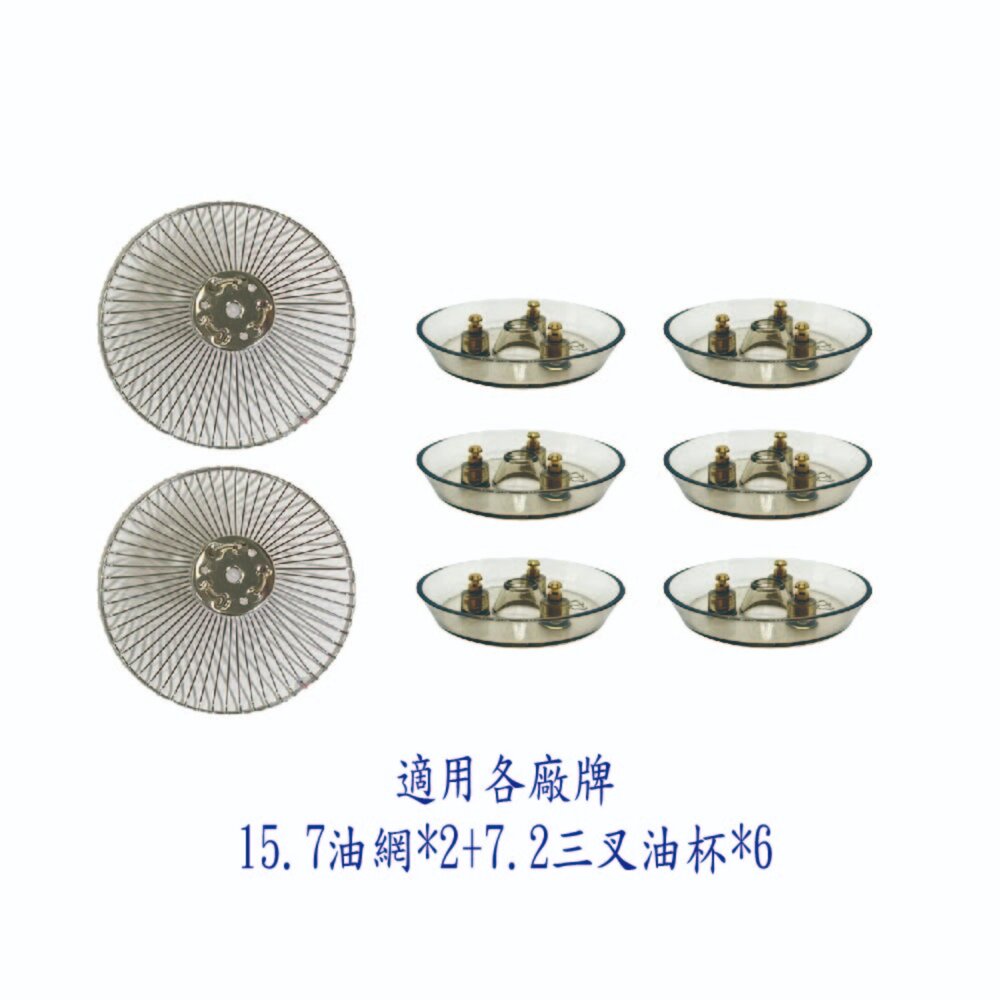內容物:油網15.7cm*2個+低三叉油杯*6個