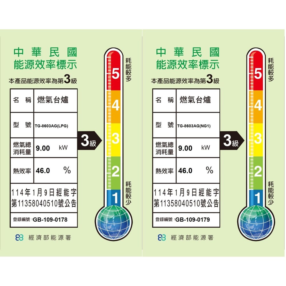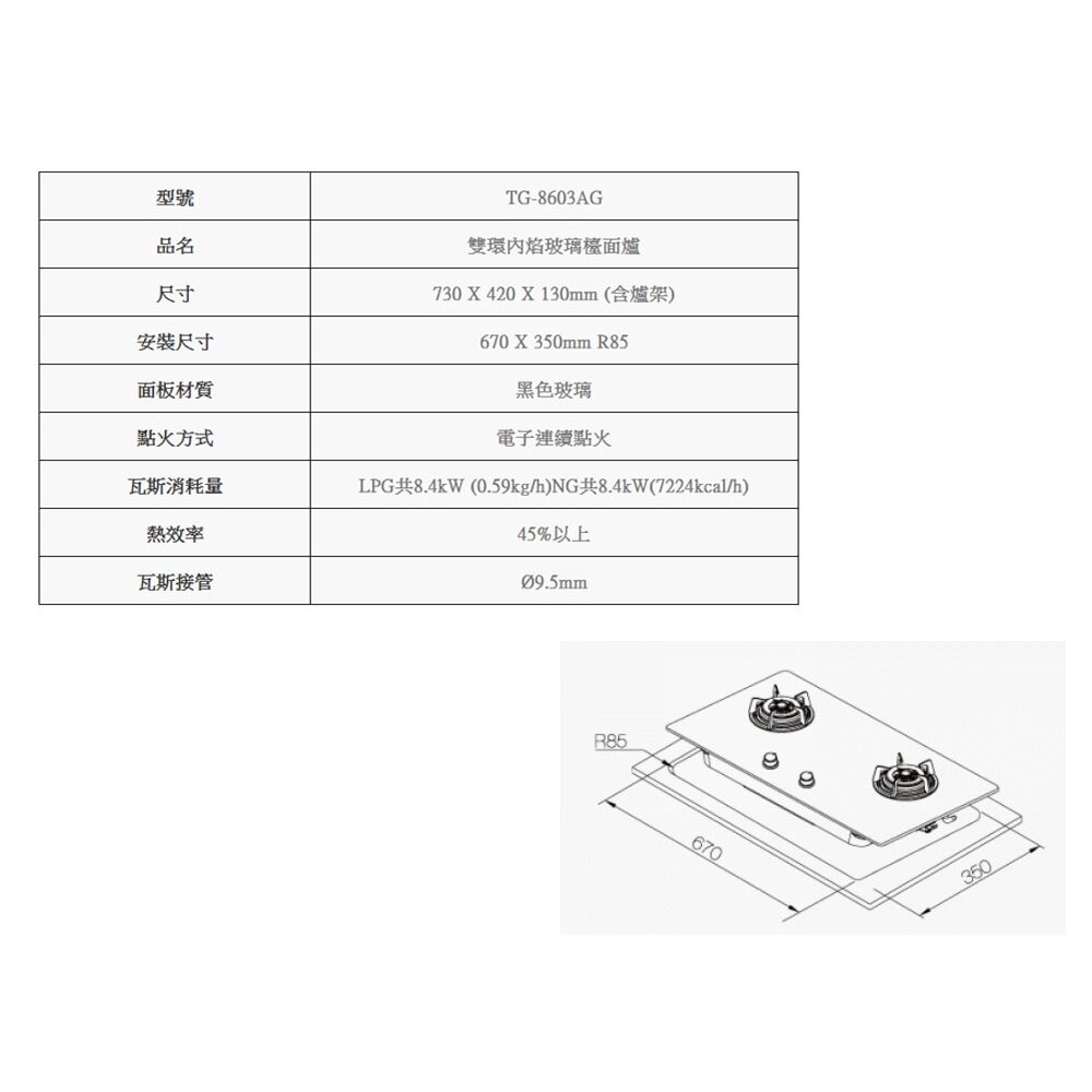 莊頭北 TG-8603AG 雙環內焰玻璃檯面爐