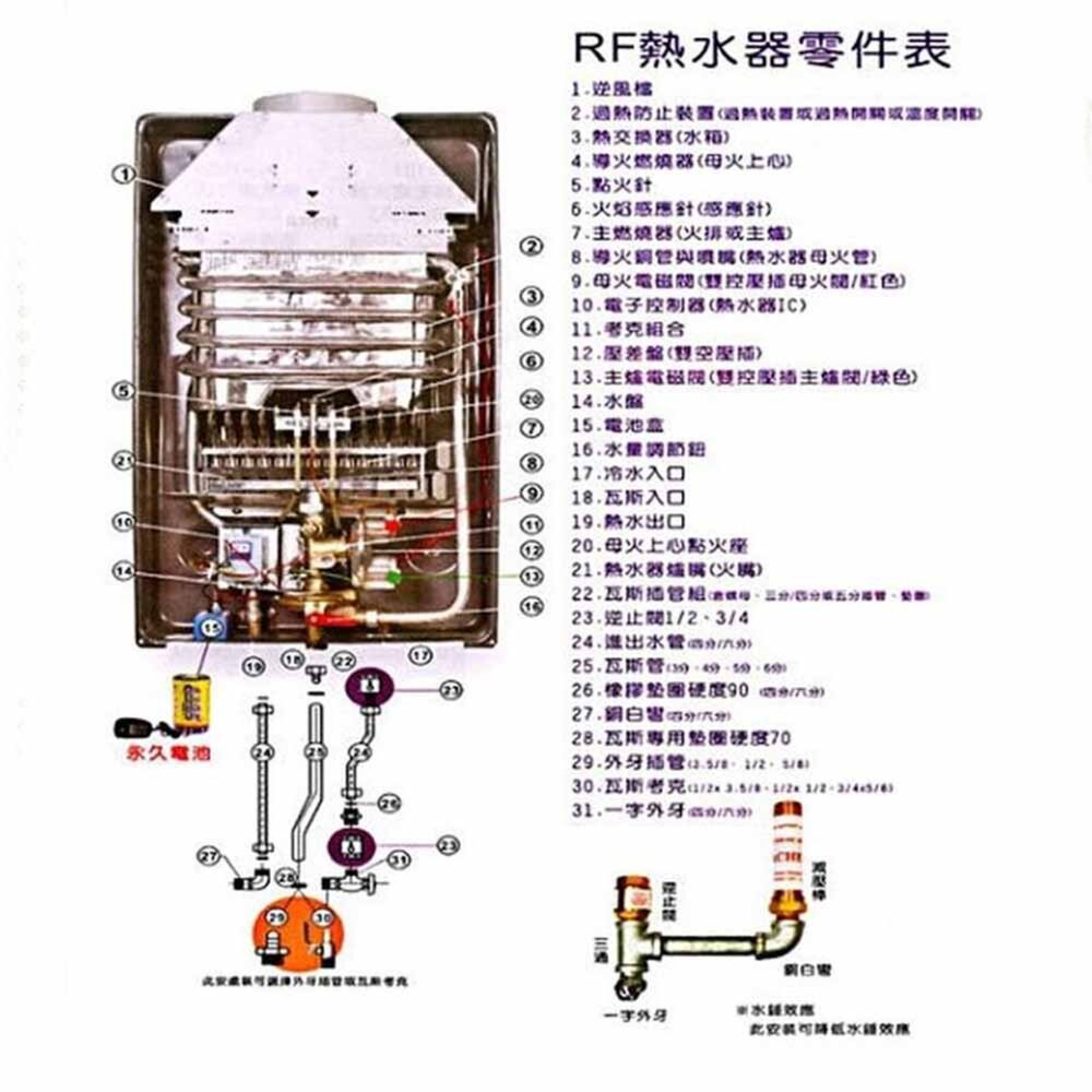 圖三為熱水器零件分佈圖