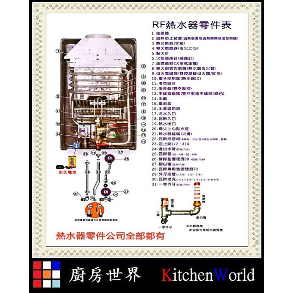 圖三為熱水器零件分佈圖