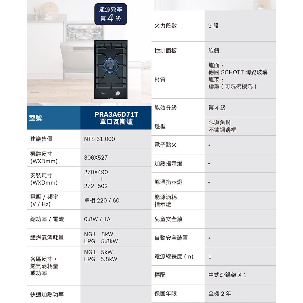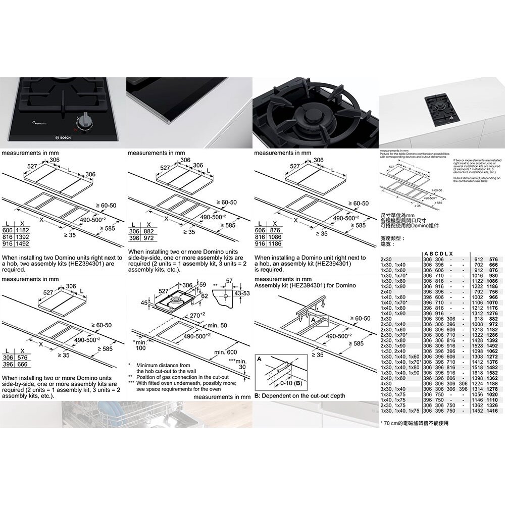型號:BOSCH 博世牌 PRA3A6D71T Domino 瓦斯爐