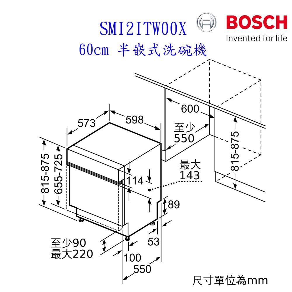 型號:BOSCH 博世 SMI2ITW00X 2系列 60cm 半嵌式洗碗機