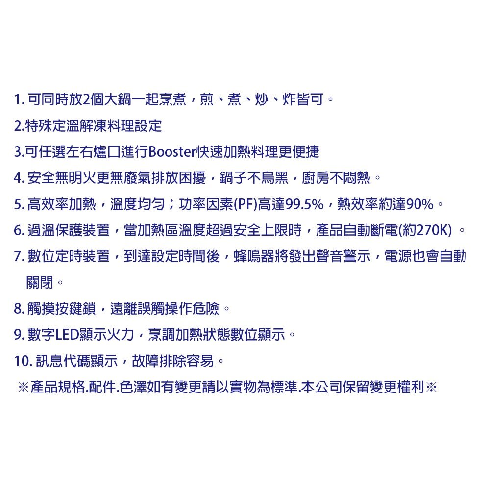 3.可任選左右爐口進行Booster快速加熱料理更便捷