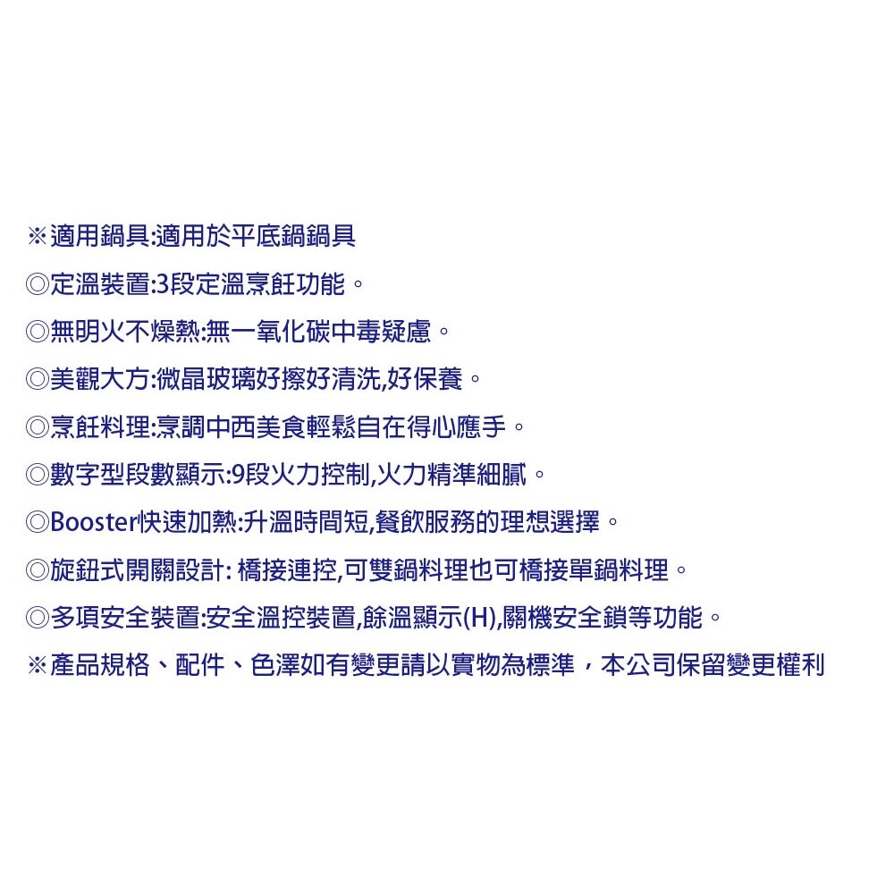 適用鍋具:適用於平底鍋鍋具 定溫裝置:3段定溫烹飪功能 無明火不燥熱:無一氧化碳中毒疑慮 美觀大方:微晶玻璃好擦好清洗,好保養