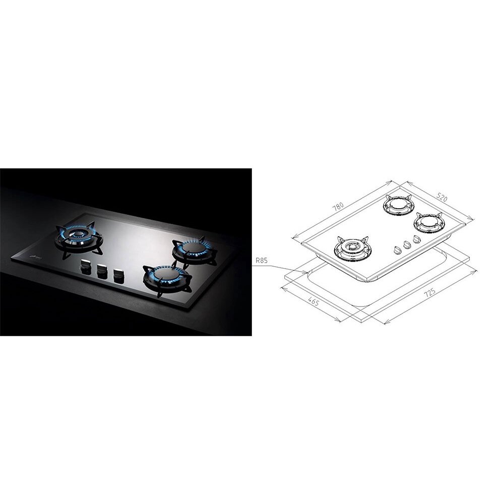 豪山牌 SB-3205 三口歐化檯面玻璃爐