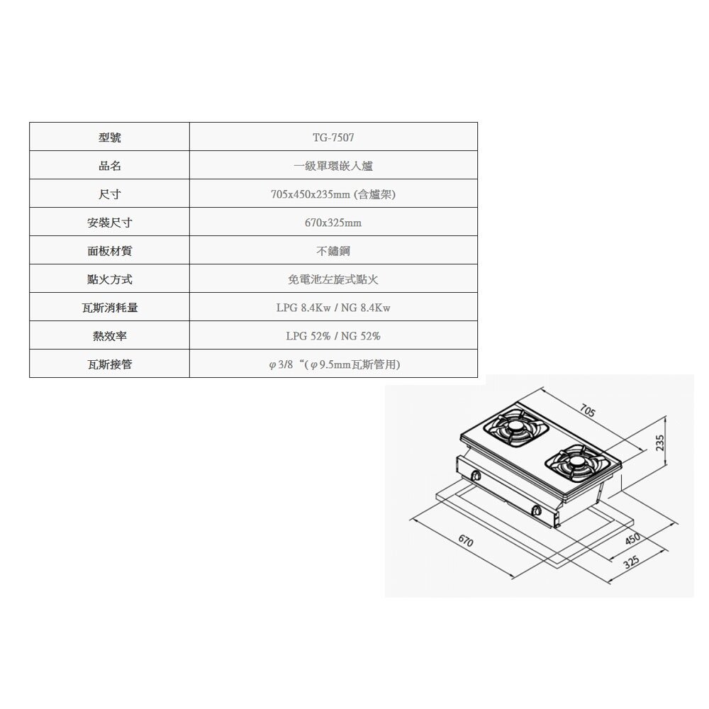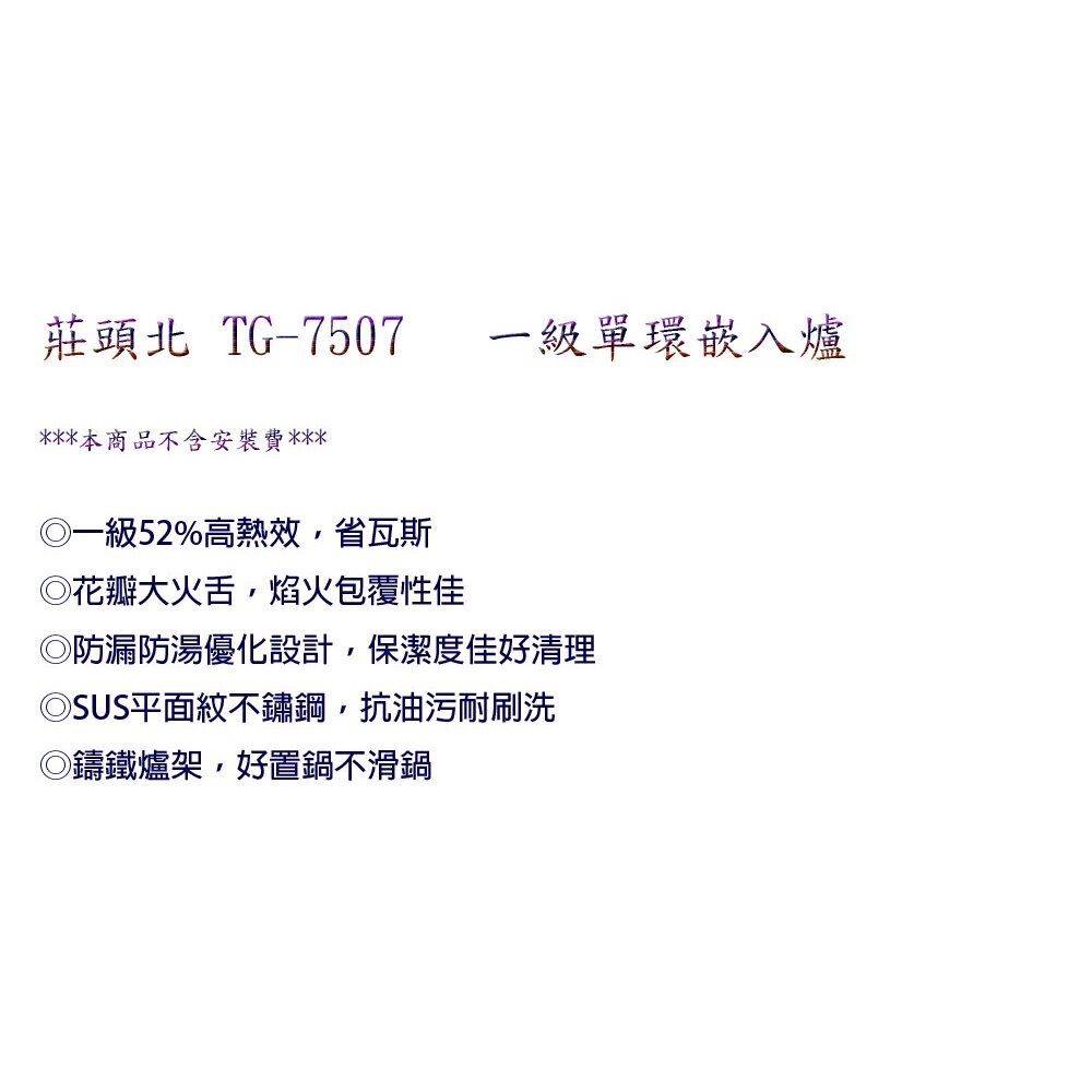 莊頭北 TG-7507 一級單環嵌入爐