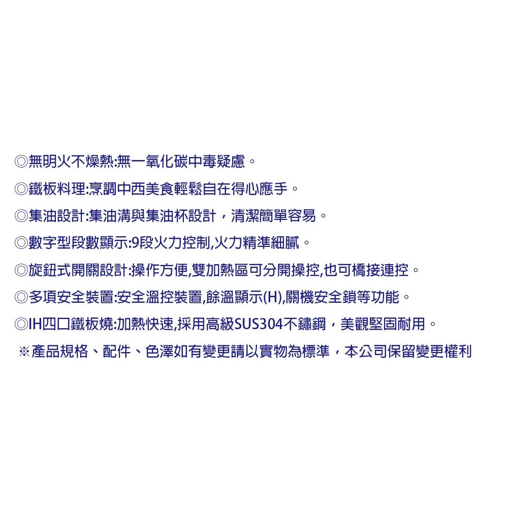 豪山牌 IT-1708 4口鐵板燒