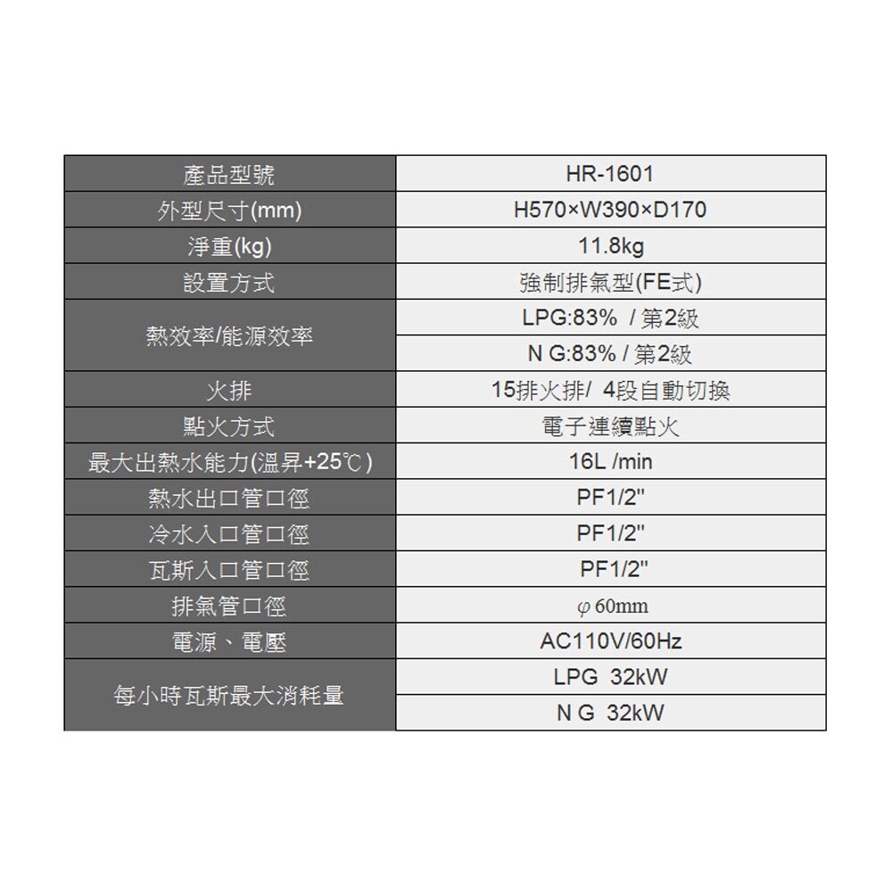 豪山牌 HR-1301 屋內強制排氣型 FE式熱水器 13L