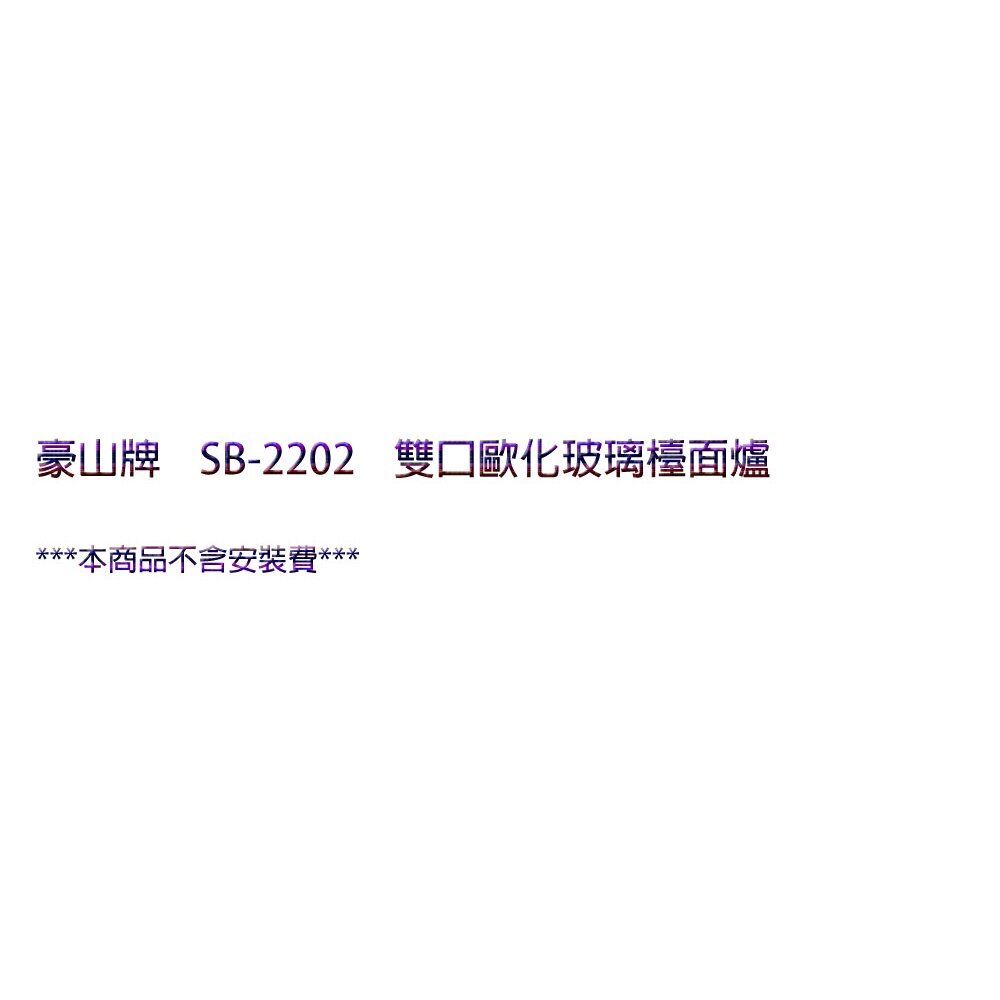 豪山牌 SB-2202 雙口歐化玻璃檯面爐