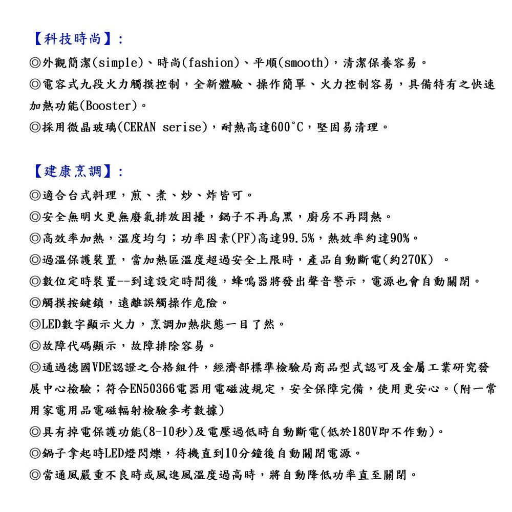 豪山牌 IH-1017 IH微晶調理爐