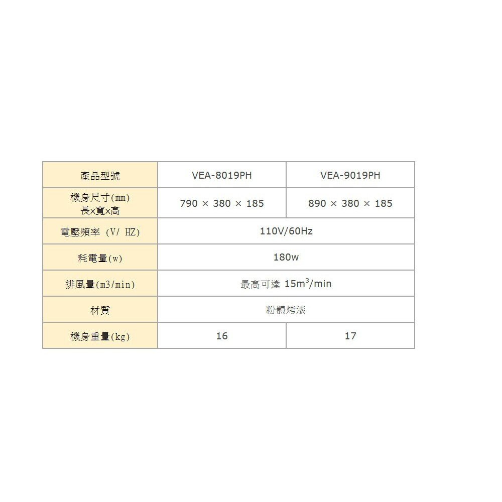 豪山牌 VEA-8019PH 超薄隱藏式排油煙機