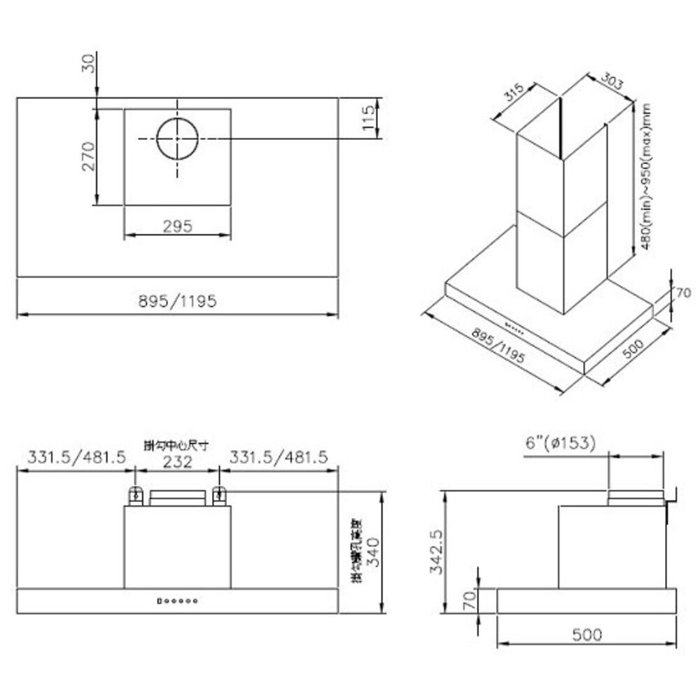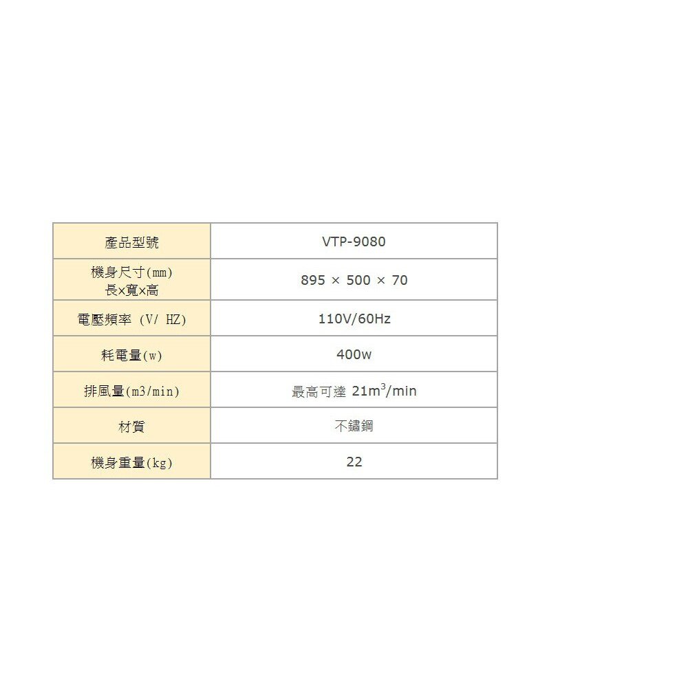豪山牌 VTP-9080 倒T型排油煙機