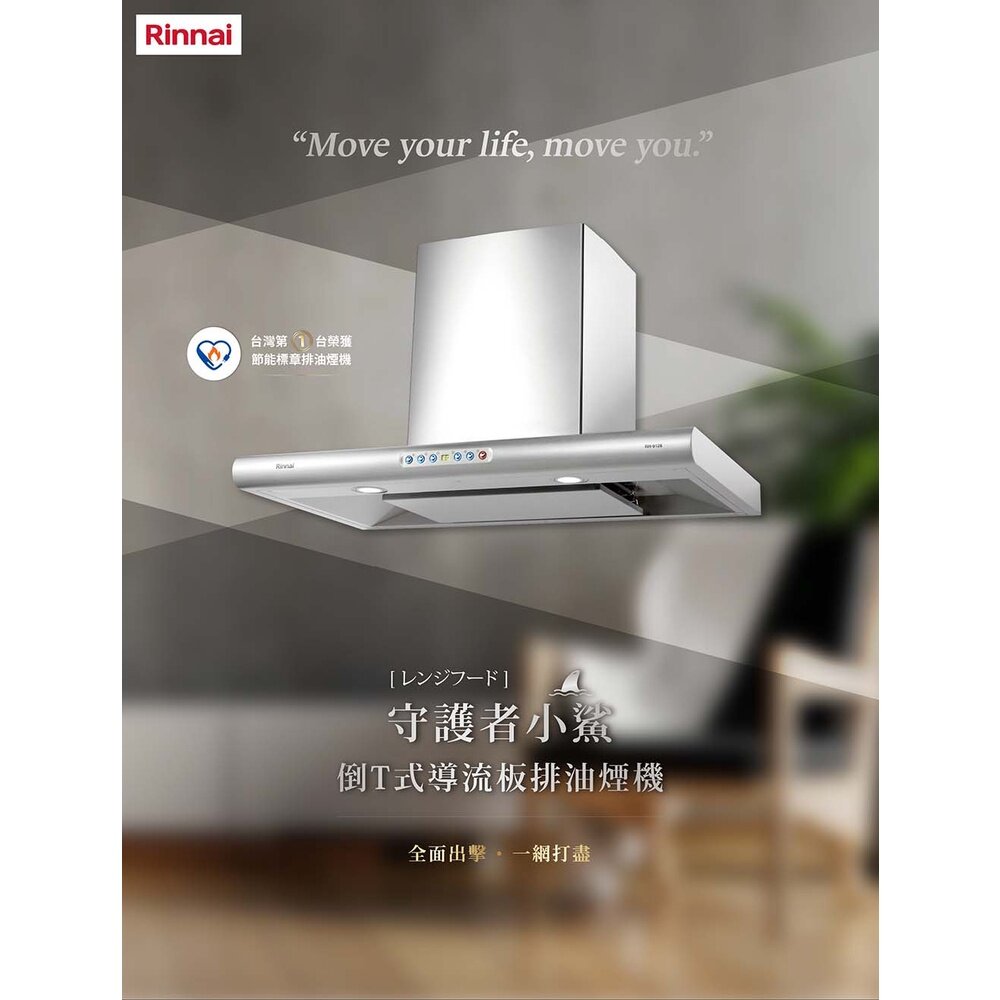 型號:林內牌 RH-9128 90公分 倒T式導流板排油煙機 守護者小鯊