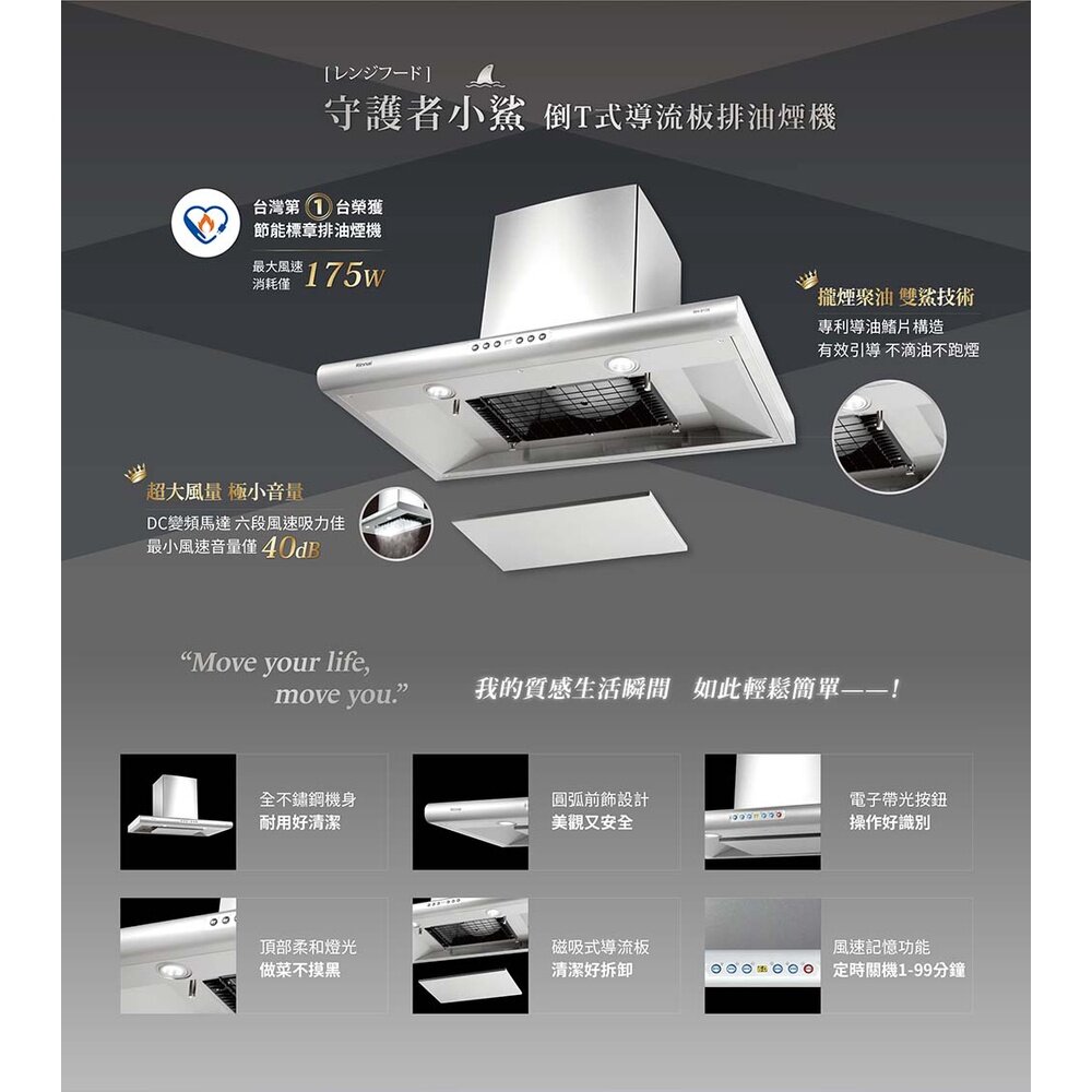•業界首座榮獲節能標章之排油煙機