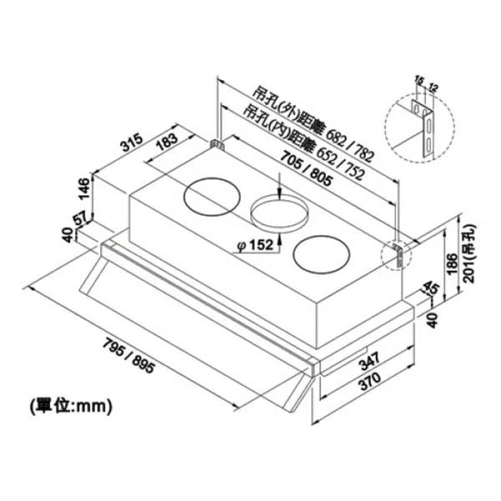 型號: TR-5612 隱藏式 排油煙機 全機不鏽鋼
