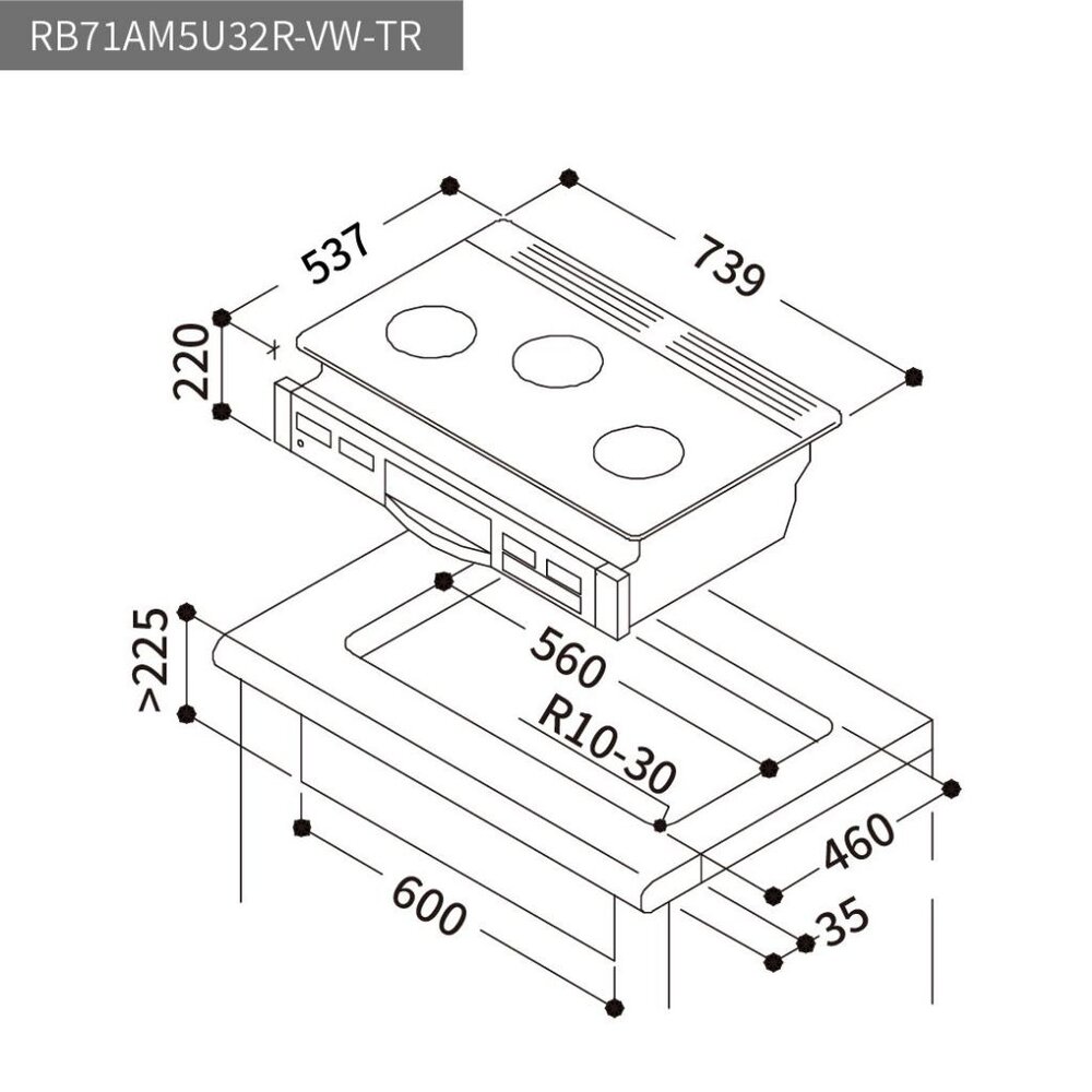 林內牌 RB71AM5U32R-VW-TR 爐連烤防漏玻璃三口爐