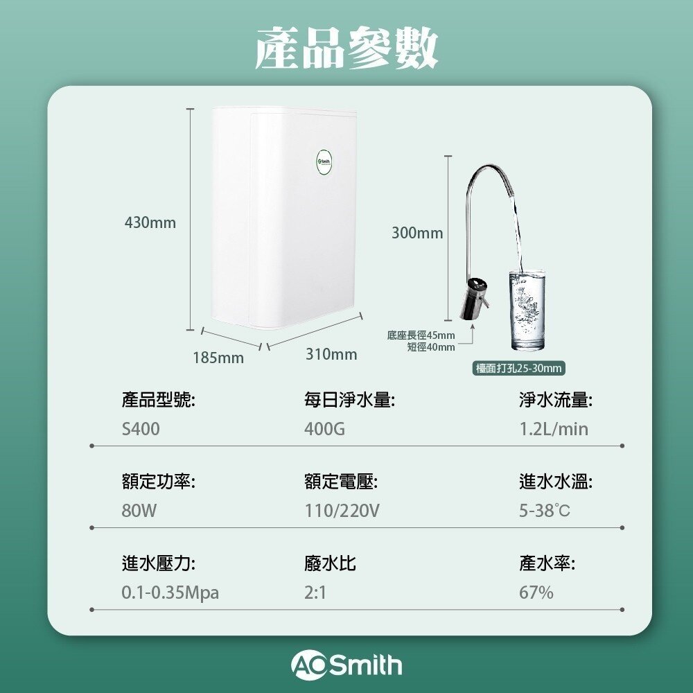 型號:AO Smith S400 RO逆滲透淨水機 【KW廚房世界】