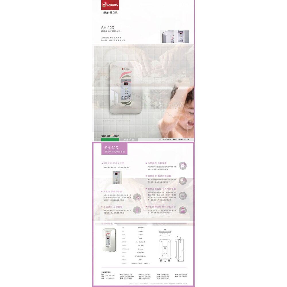櫻花牌 SH123 數位恆溫電熱水器