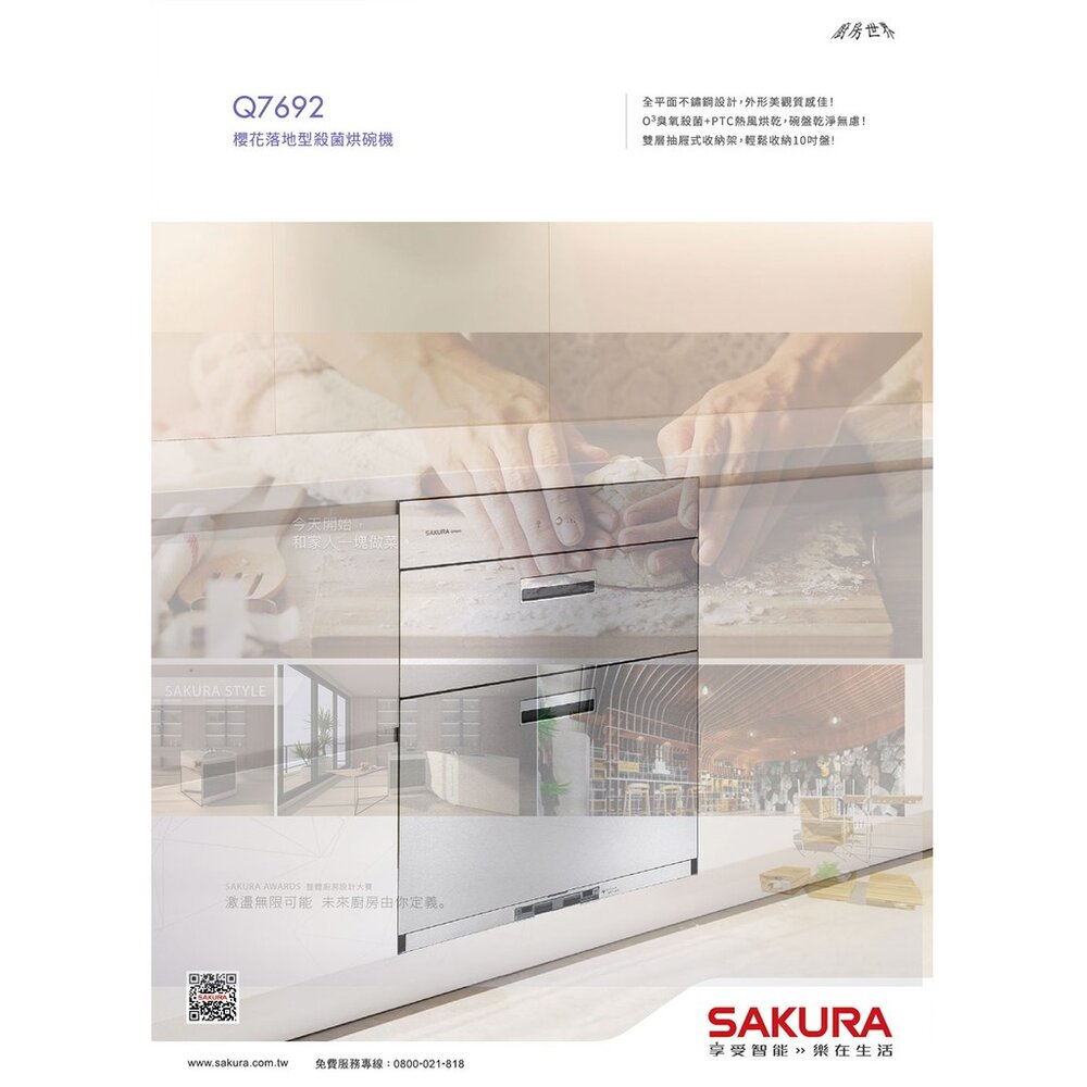 櫻花牌 Q7692/L 雙門全平面不鏽鋼落地式烘碗機