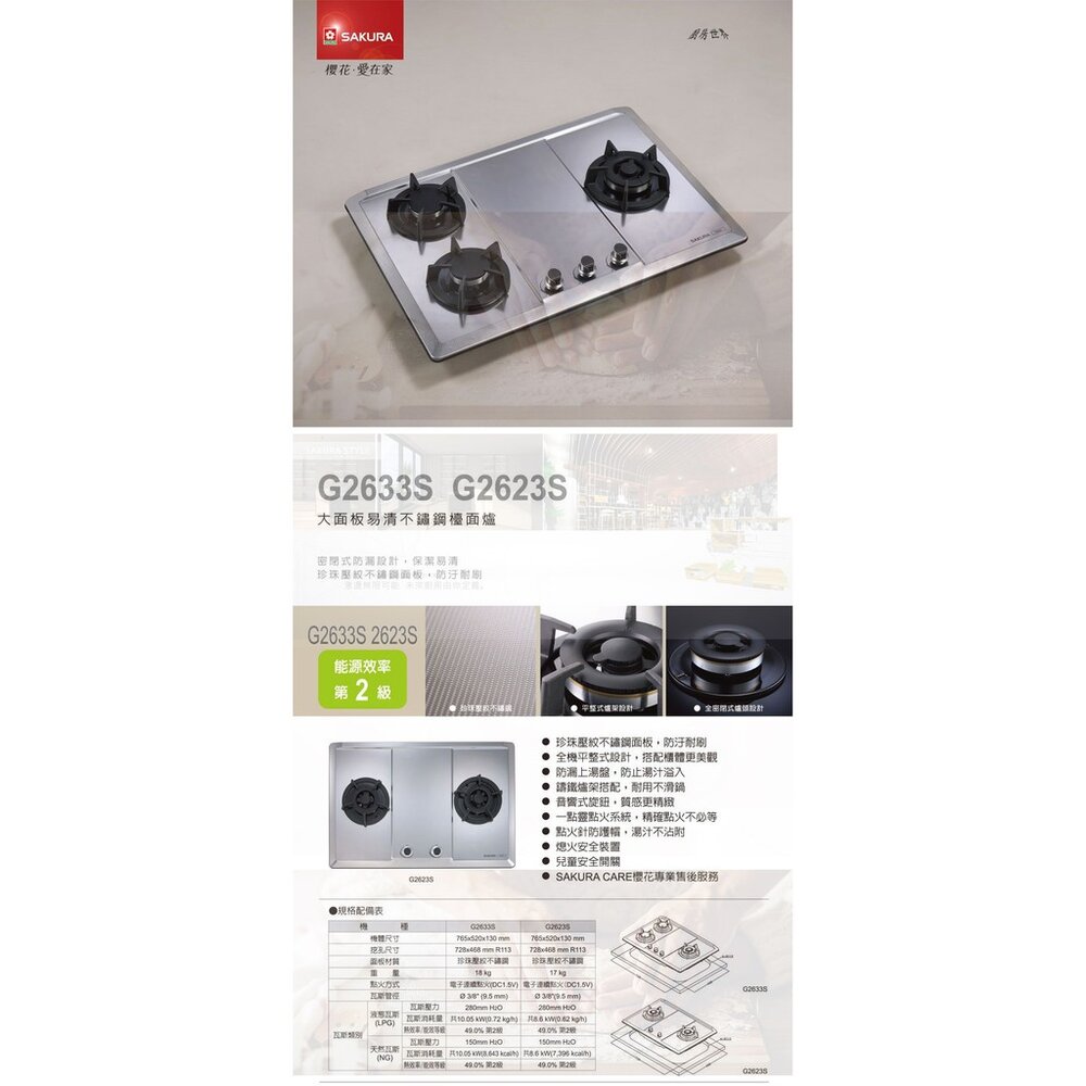 櫻花牌 G2623AG/S 二口大面板易清檯面爐 G2623S