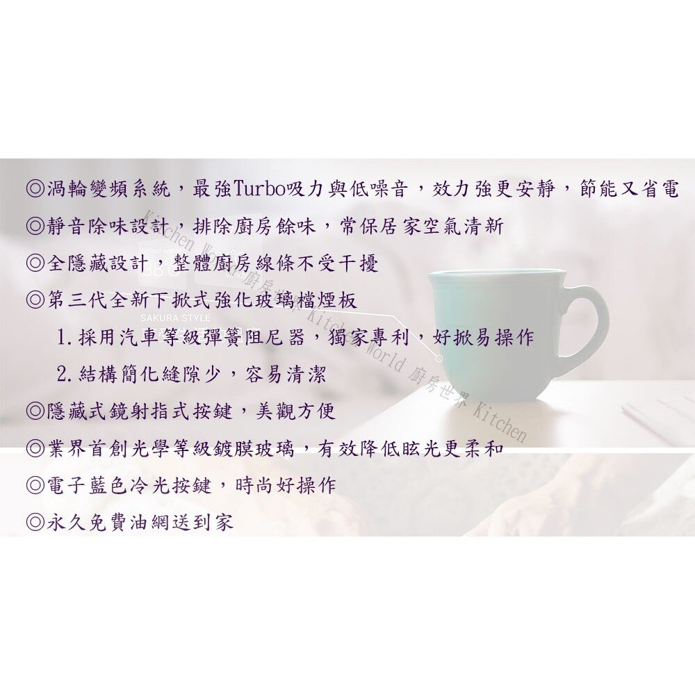 櫻花牌 DR3590A L/XL 全隱藏型除油煙機 渦輪變頻系列