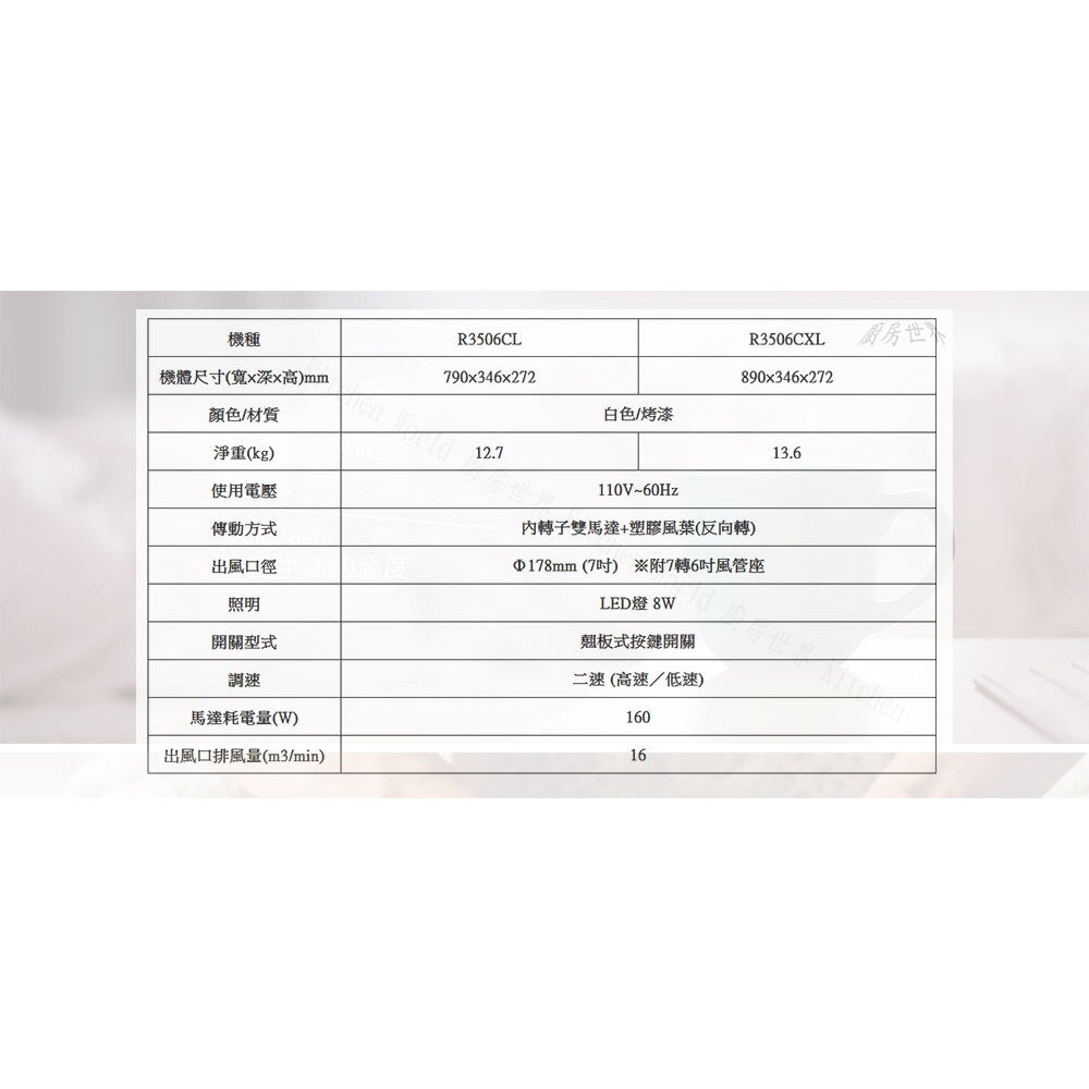 櫻花牌 R3506C L/XL 全隱藏式 除油煙機