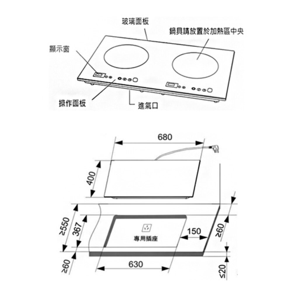 天板材質:黑色微晶強化玻璃