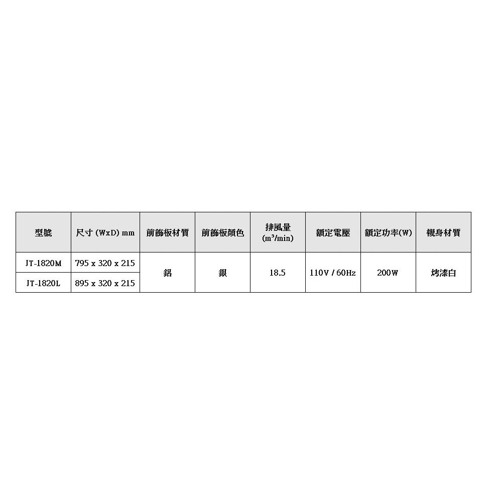 喜特麗 JT-1820M JT-1820L 全隱藏式排油煙機