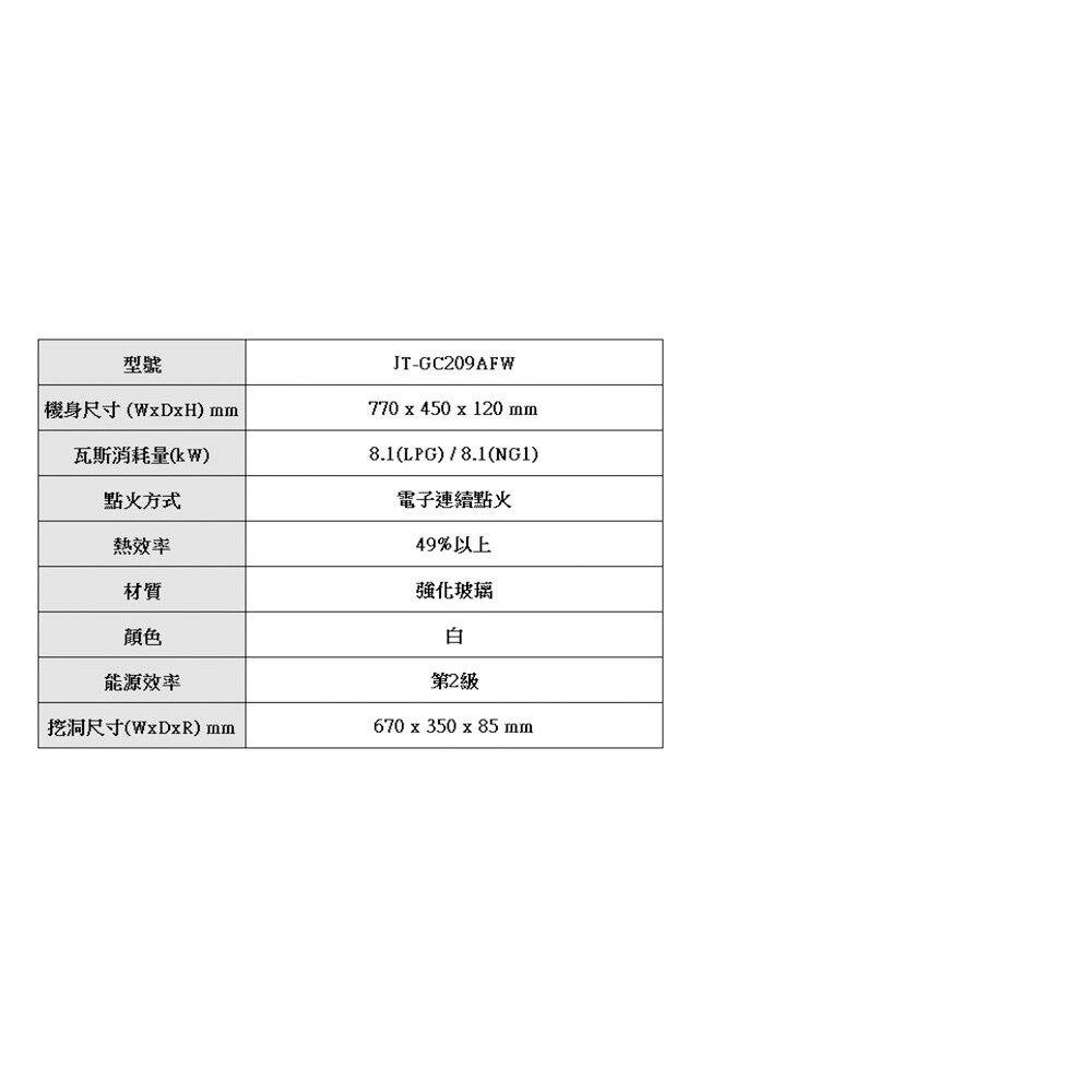 喜特麗 JT-GC209AFW 雙口白色玻璃檯面爐