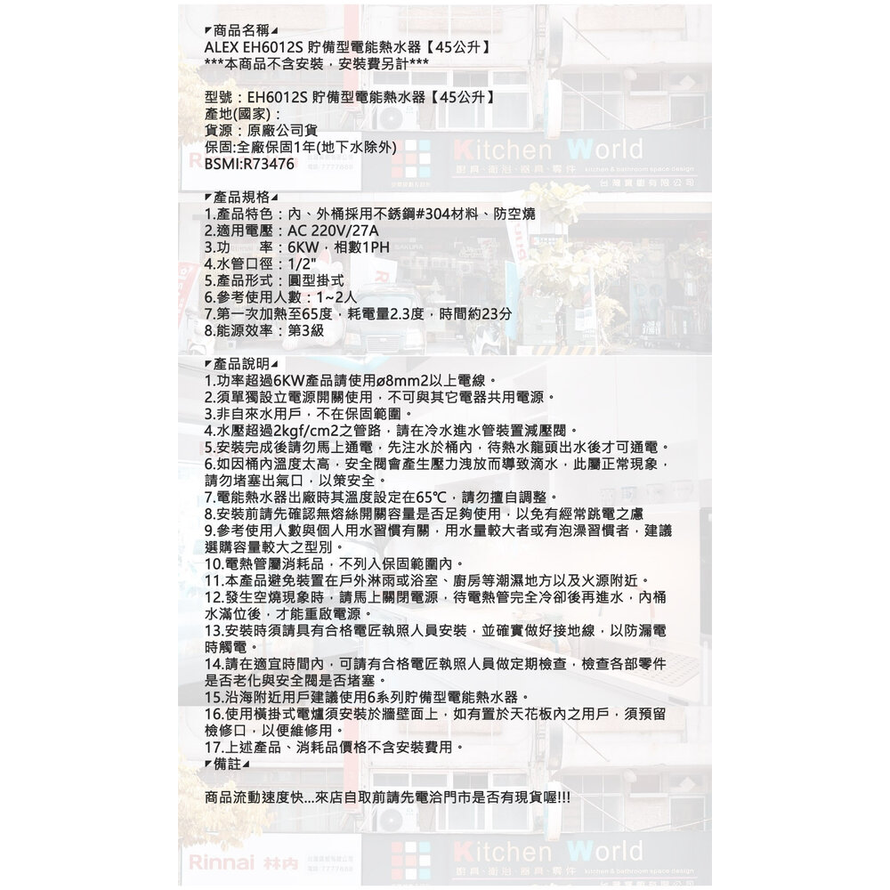 ⭐️商品標題有寫『限定區域送基本安裝』,則售價包含基本安裝(有限定地區),材料費及施工費另計