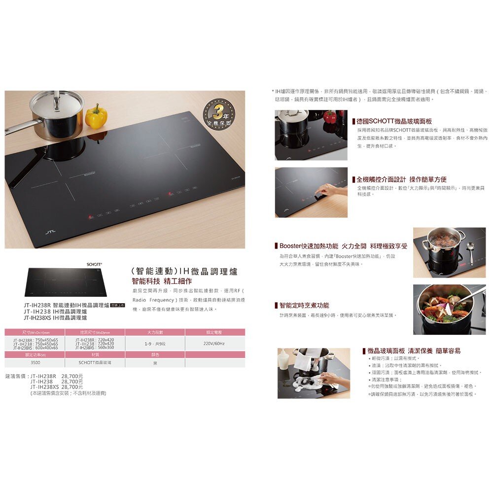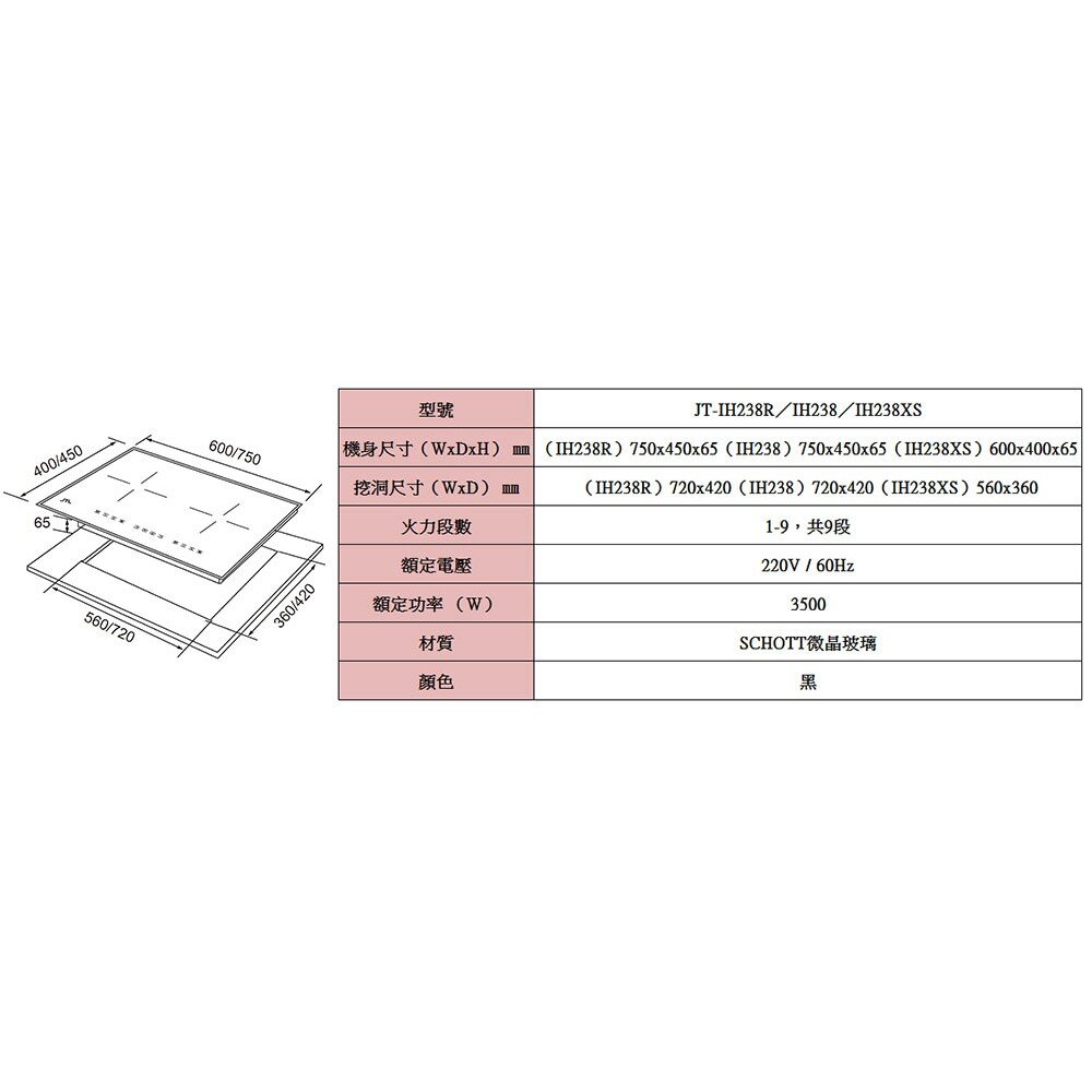 喜特麗 JT-IH238 / 238XS / 238R IH微晶調理爐 / 智能連動IH微晶調理爐
