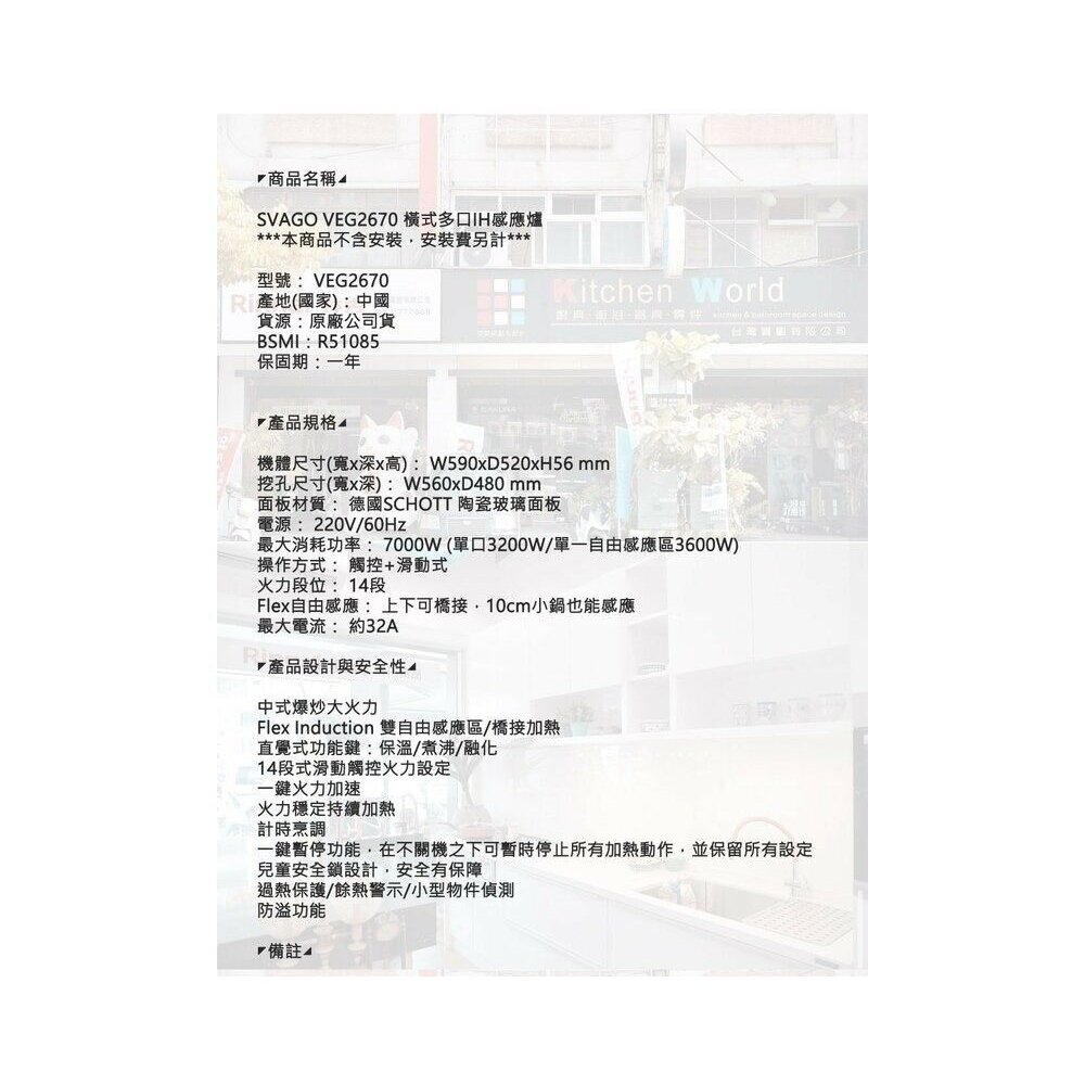 型號:高雄 櫻花 Svago VEG2670 橫式多口IH感應爐