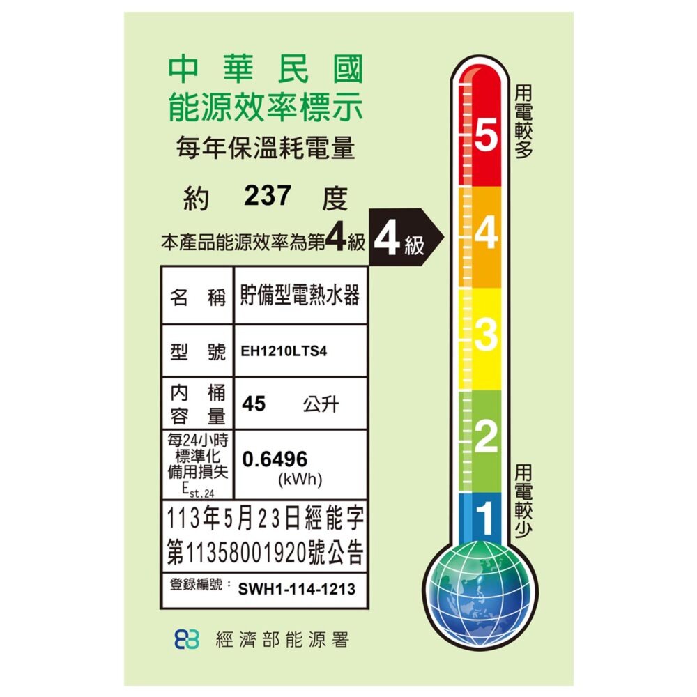 櫻花牌 EH1210LTS4 定時 儲熱式 電熱水器 12加侖