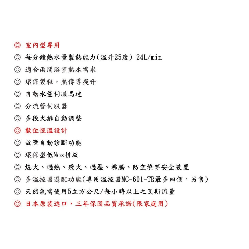 林內牌 REU-A2426WF-TR 24L 數位恆溫強制排氣熱水器 日本原裝進口
