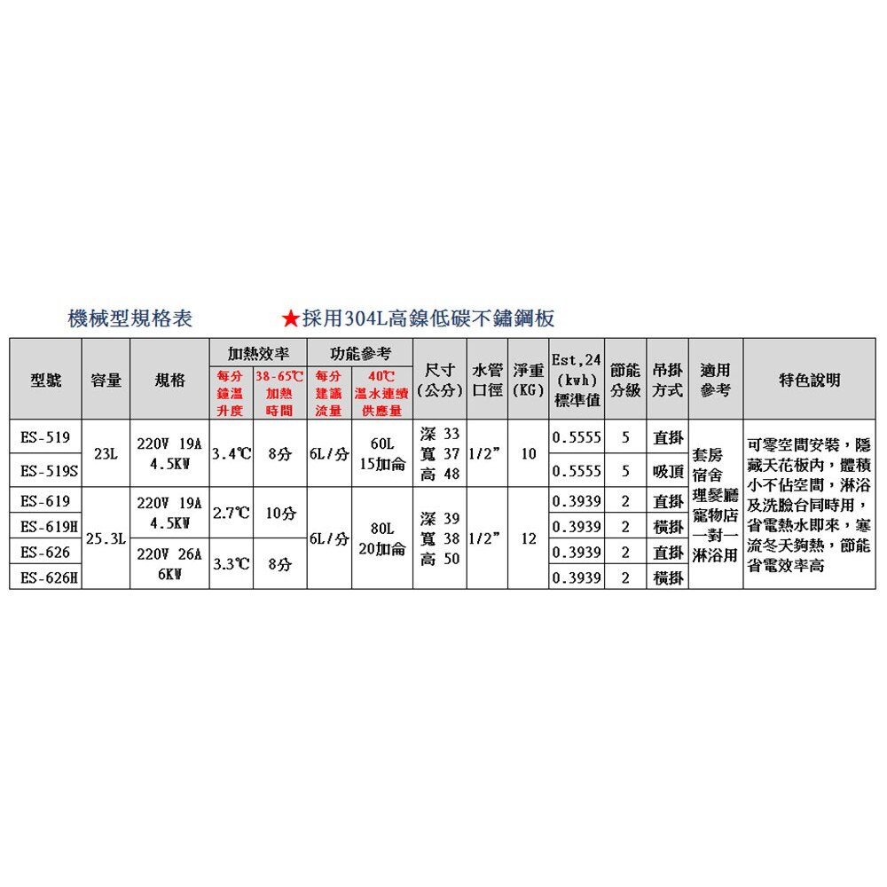 怡心牌 ES-619 25.3L 直掛 電能 熱水器