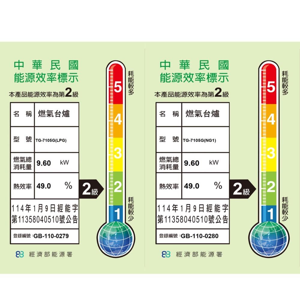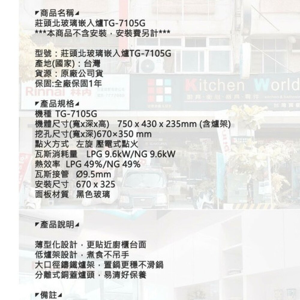 型號: 莊頭北 TG-7105G 玻璃嵌入爐 瓦斯爐