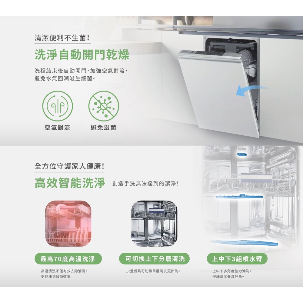 •八段洗程,最高70度高溫洗淨