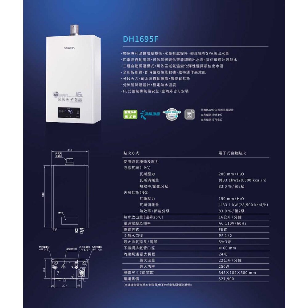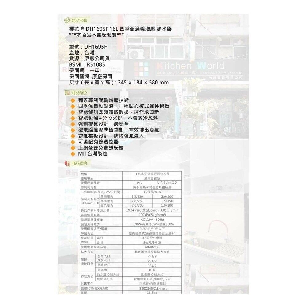 櫻花牌 DH1695F 16L 四季溫渦輪增壓
