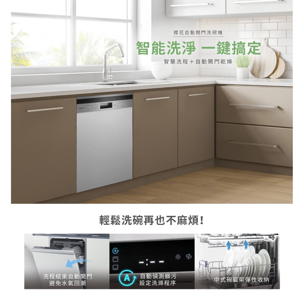 型號:櫻花牌 E7683 半嵌式自動開門洗碗機