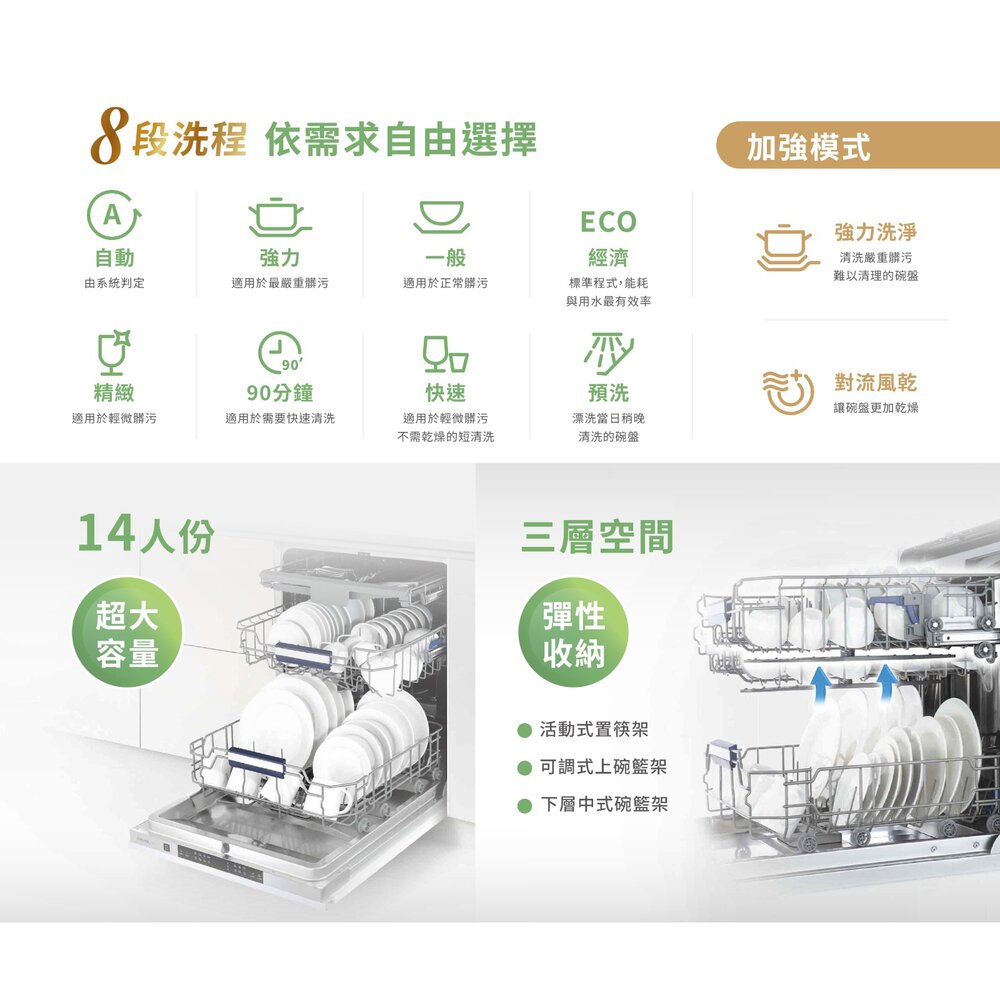 •八段洗程,最高70度高溫洗淨