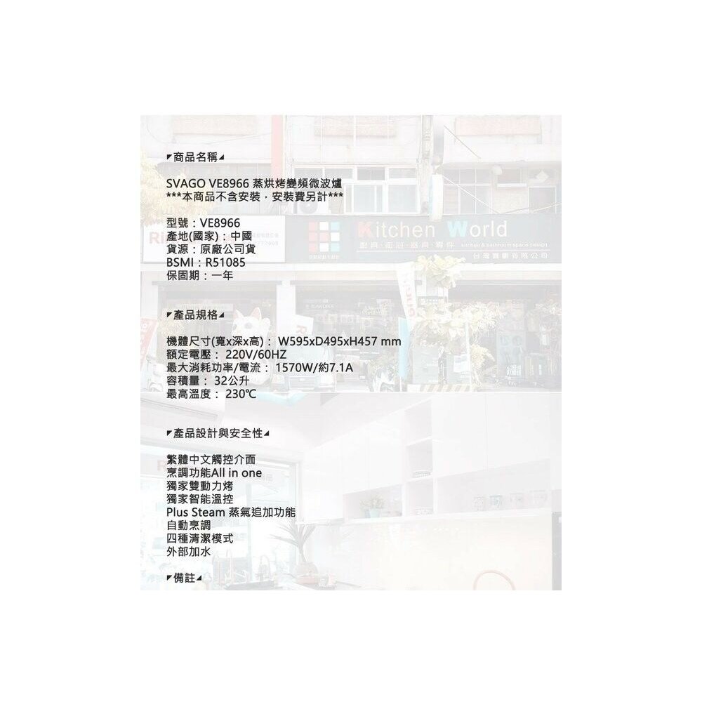 型號:高雄櫻花 Svago VE8966 蒸烘烤變頻微波爐