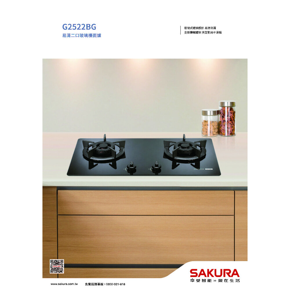 高雄 櫻花牌 G2522BG 二口小面板易清檯面爐