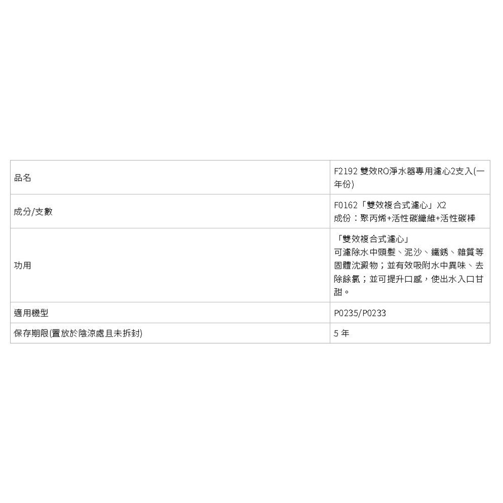 櫻花牌 F2192 雙效RO淨水器專用濾心2支入(一年份)