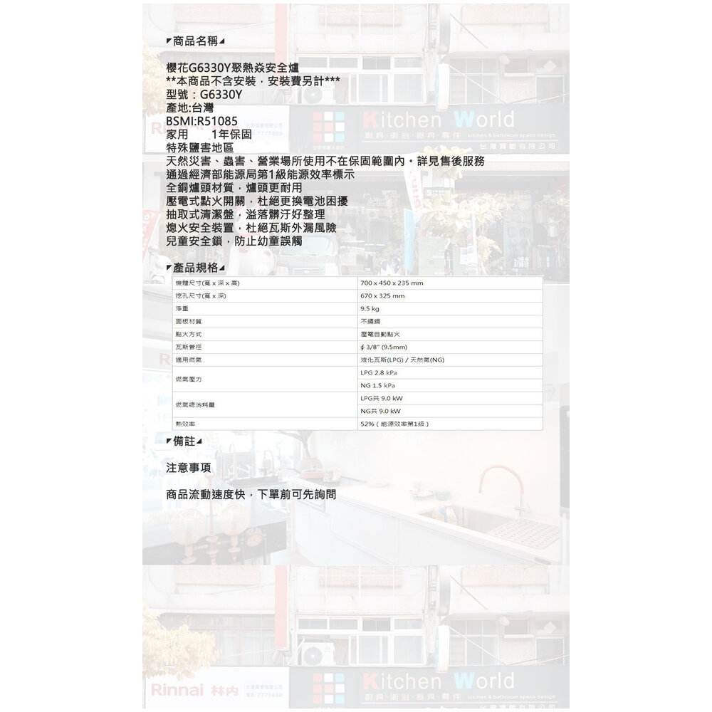 適用燃氣:液化瓦斯(LPG) / 天然氣(NG)