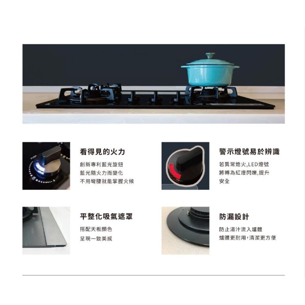 警示紅光設計,異常熄火紅燈顯示,提升安全性