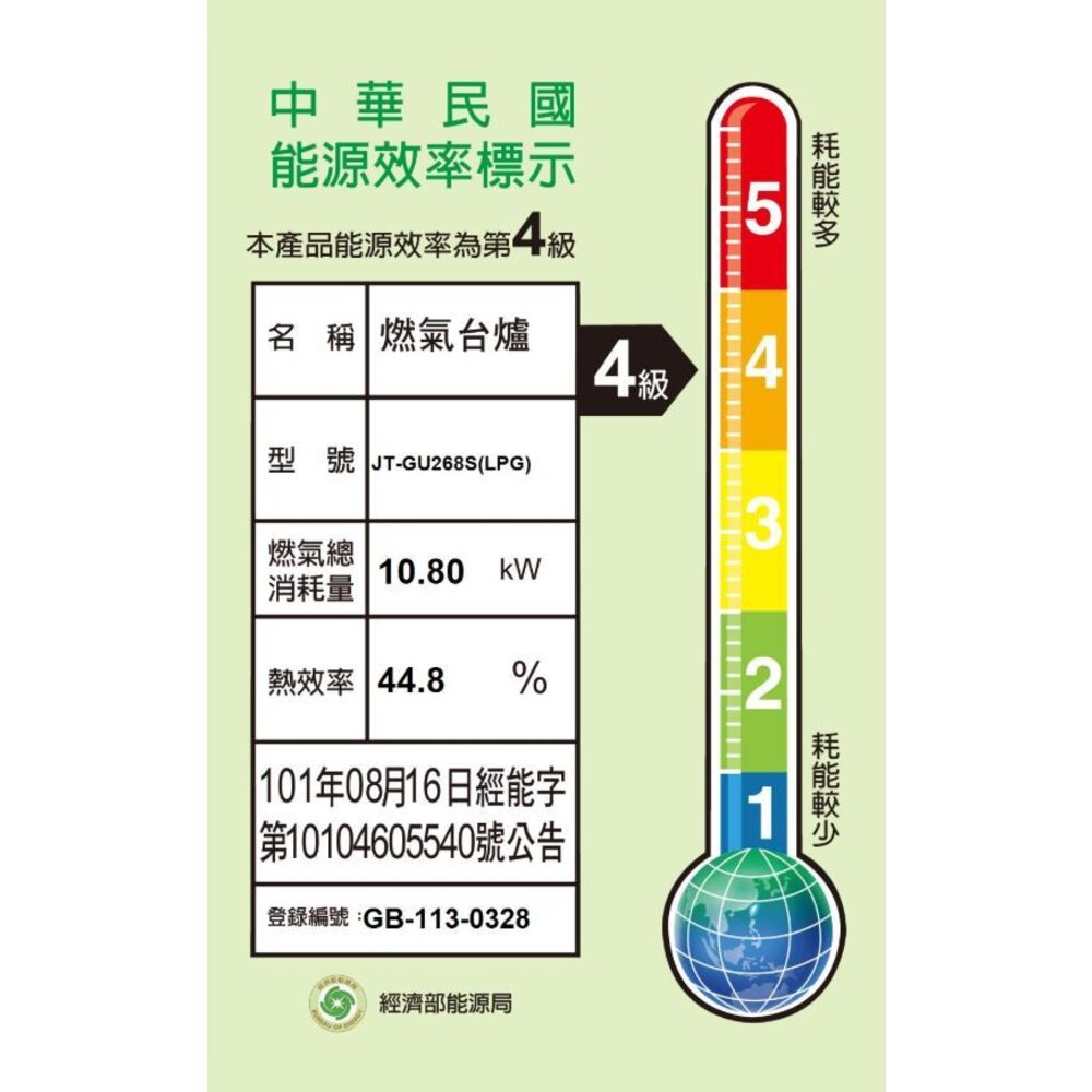 能源效率:NG1 能源效率第 3 級;LPG 能源效率第 4 級